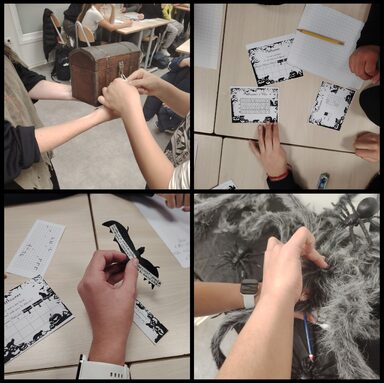 Par NATHALIE COLAS, publié le mercredi 5 novembre 2025 09:54 - Mis à jour le mercredi 5 novembre 2025 09:54Vendredi avant les vacances, quelques élèves de 6e et de 5e ont participé à un ESCAPE GAME mathématique ... Des indices à trouver dans un décor effrayant🕷️🕸️, des énigmes à résoudre 💹✏️, un travail d'équipe pour parvenir à ouvrir LE coffre 🔓🍬... -