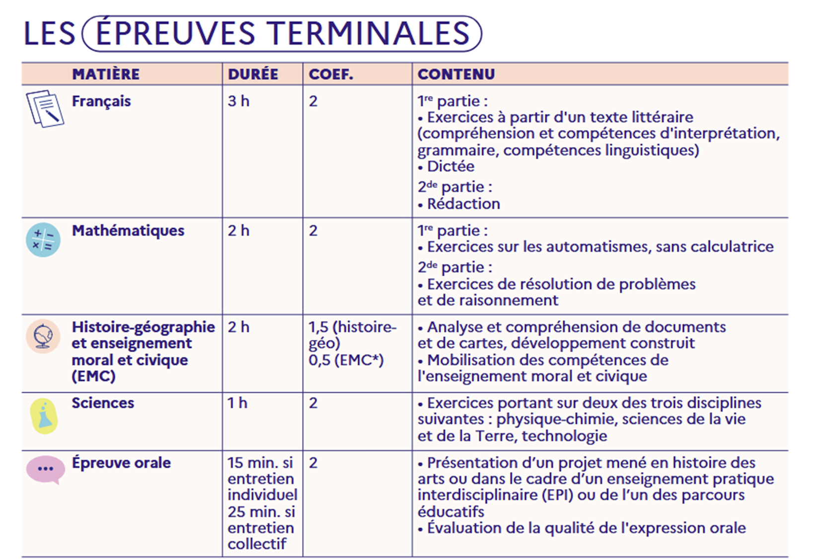 Les horaires sont aménagés pour les élèves bénéficiant de tiers temps supplémentaire.